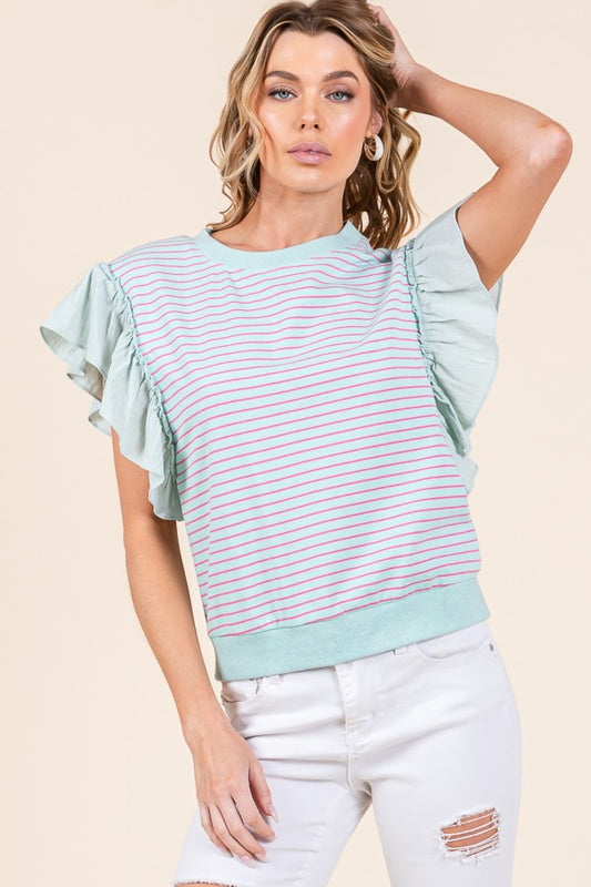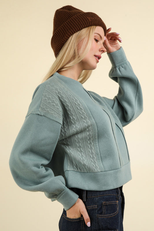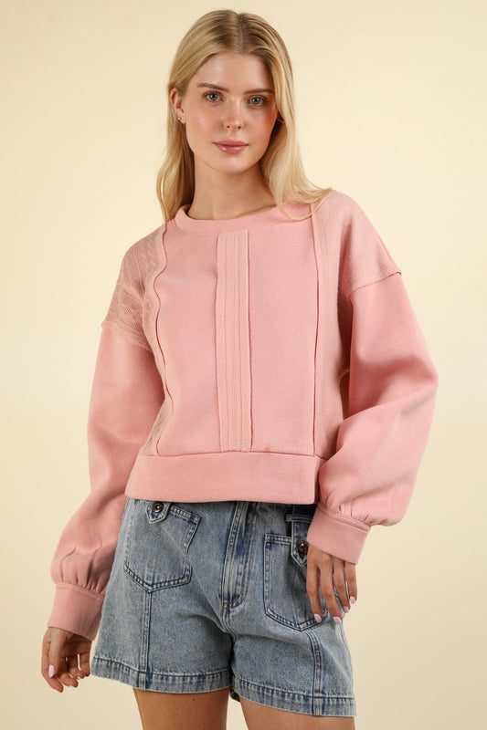 Apricot Leopard Print Long Sleeve Ribbed Knit Blouse