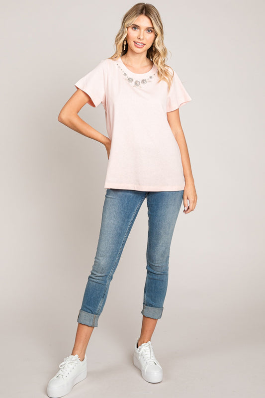 Blush Knit Top W/ Hand Sewn Bead Detail